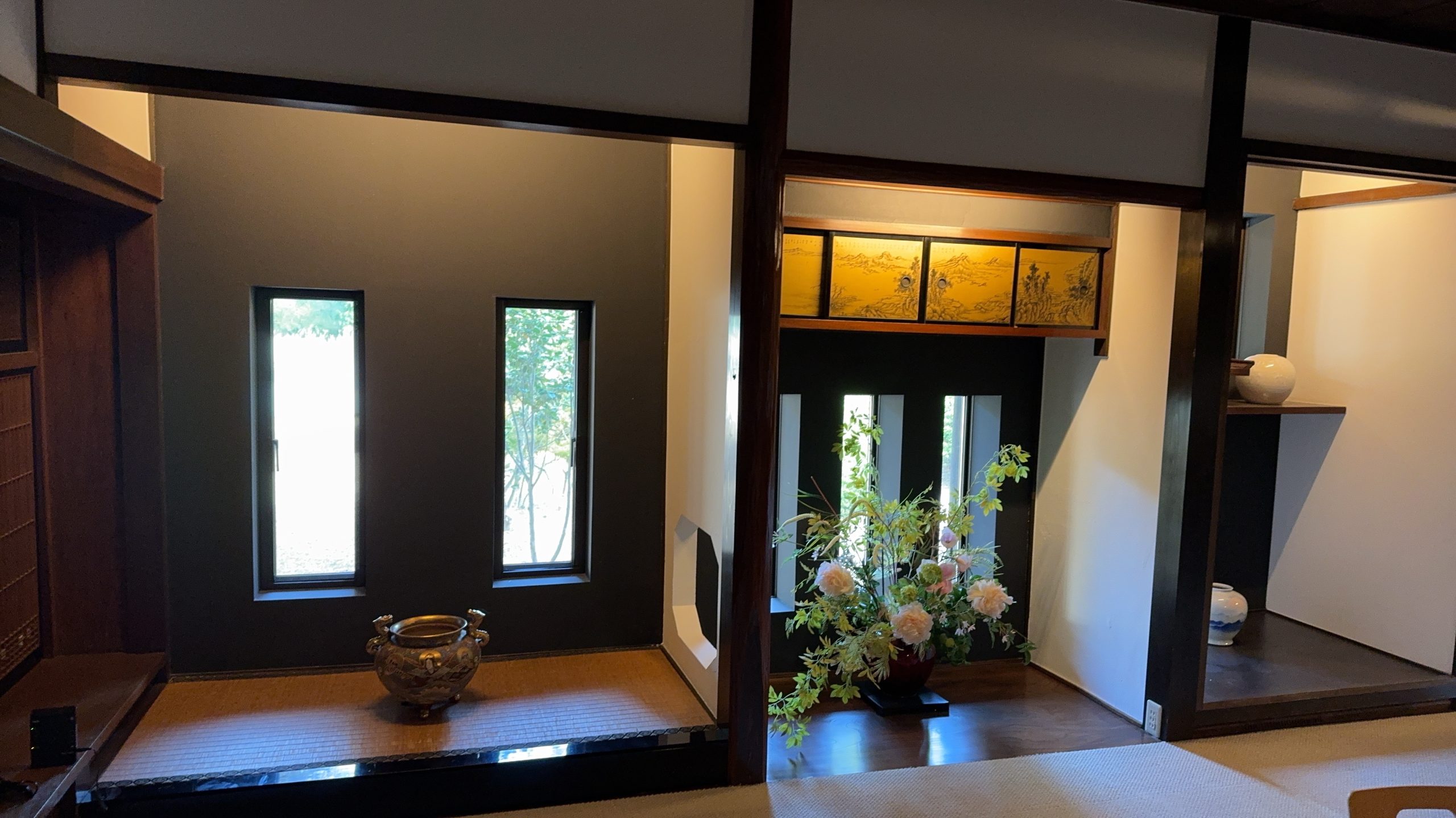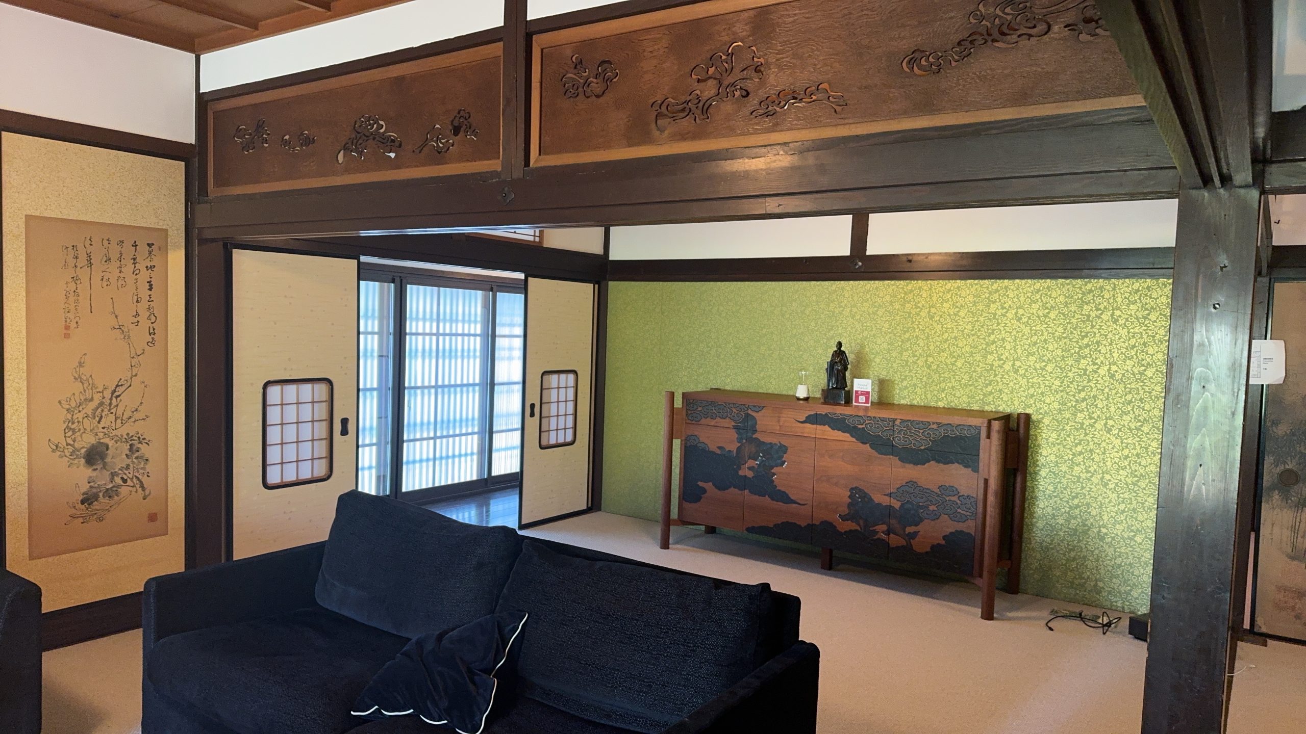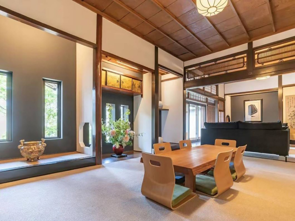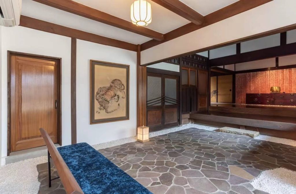 千曉和田院的大堂充滿歷史氣息,是傳統日式建築的精髓所在。 大堂以寬敞的大理石地板為主,搭配精緻的木製樑柱與紙拉門,展現了簡約而典雅的設計風格。 中央設有一個古老的爐邊,曾是家族聚會與待客的核心場所,傳遞溫馨與交流的氛圍。 牆上掛有數幅流傳百年的書法與繪畫作品,彰顯出日本傳統文化的深厚底蘊。 大堂還設有一個通往庭院的觀景窗,讓自然光與庭院美景融入空間,增添平靜與和諧的氛圍。